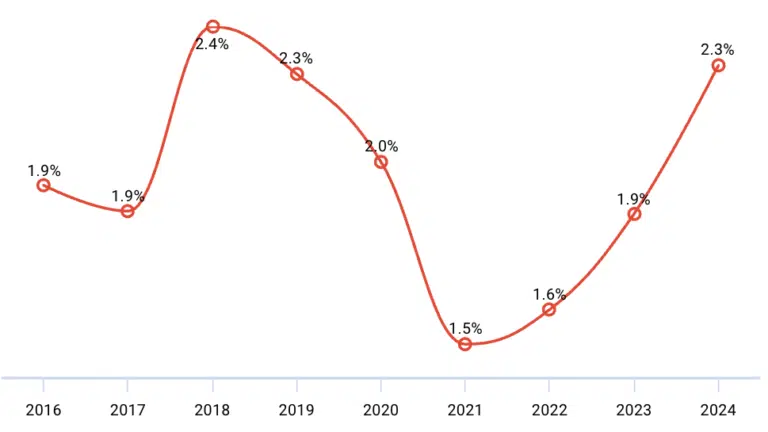 B2C | 1.7% | 2.1% | ▲ +0.4 pts |