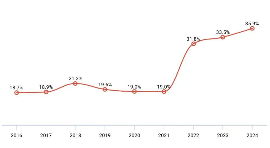 Retail | 33.7% | 38.2% | ▲ +4.5 pts |